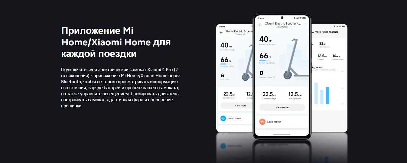 Автоматическую подсветку можно активировать в приложении Mi Home/Xiaomi Home. Когда вокруг темно, фары автоматически включаются, чтобы сделать езду еще проще.
